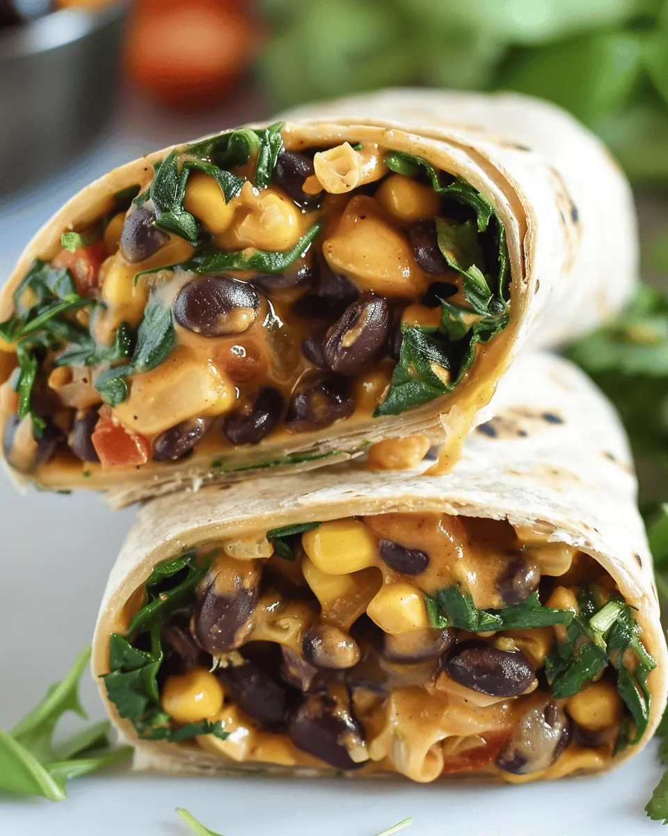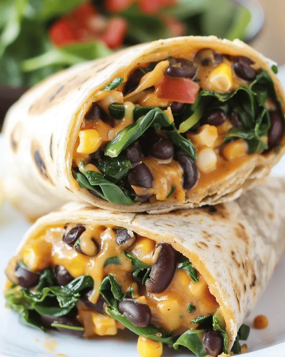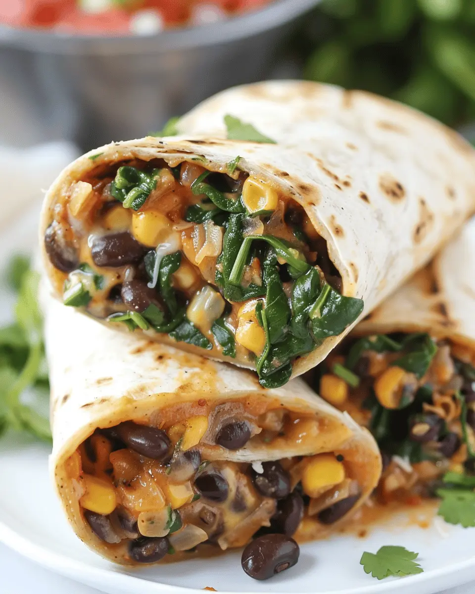 Presentation matters, even for quick meals! Elevate your 15 Minute Black Bean and Spinach Burritos by serving them on a colorful platter or wrapping them in parchment paper for a casual feel. You can also: