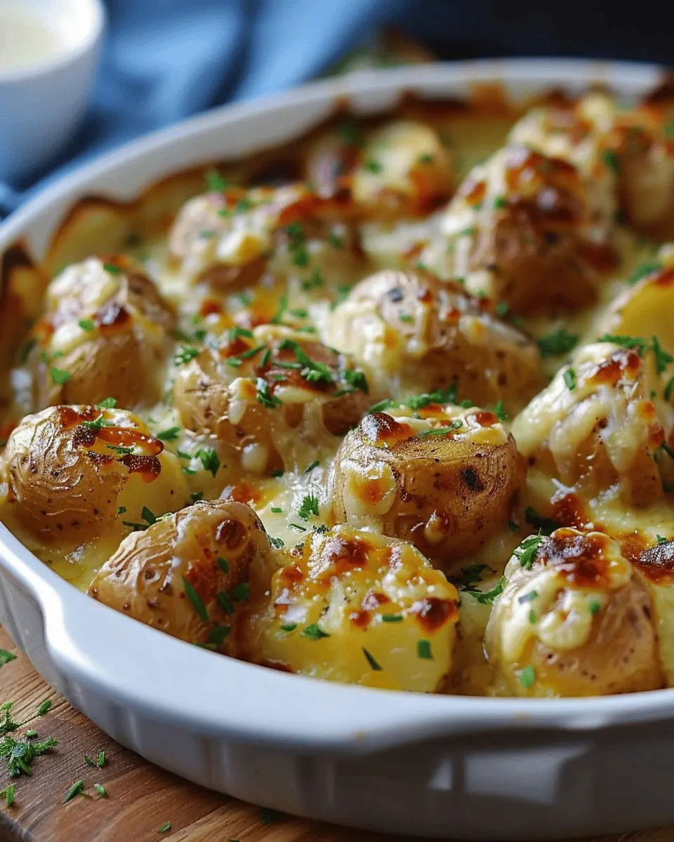 Once you’ve pulled your cheesy breakfast potatoes out of the oven, let them cool for a few minutes before serving. Garnish with fresh herbs—like parsley or chives—if you have some on hand, and enjoy your creation!