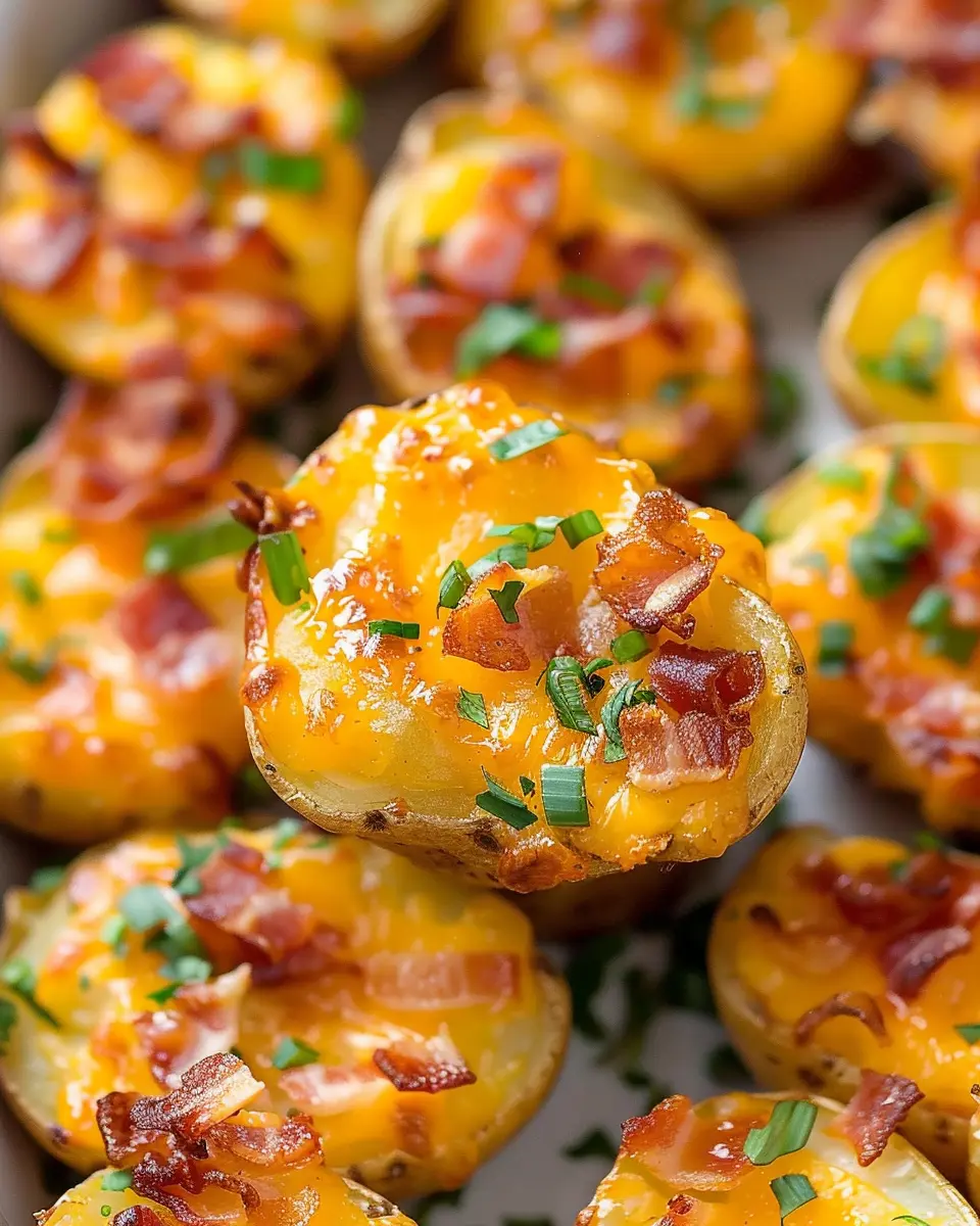 When hosting a get-together, your Cheesy Crispy Baked Potato Bites are sure to steal the spotlight. Serve them on a vibrant platter with an assortment of dips laid out to encourage mingling.