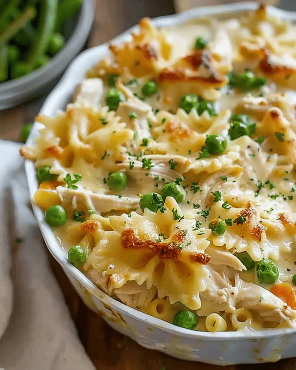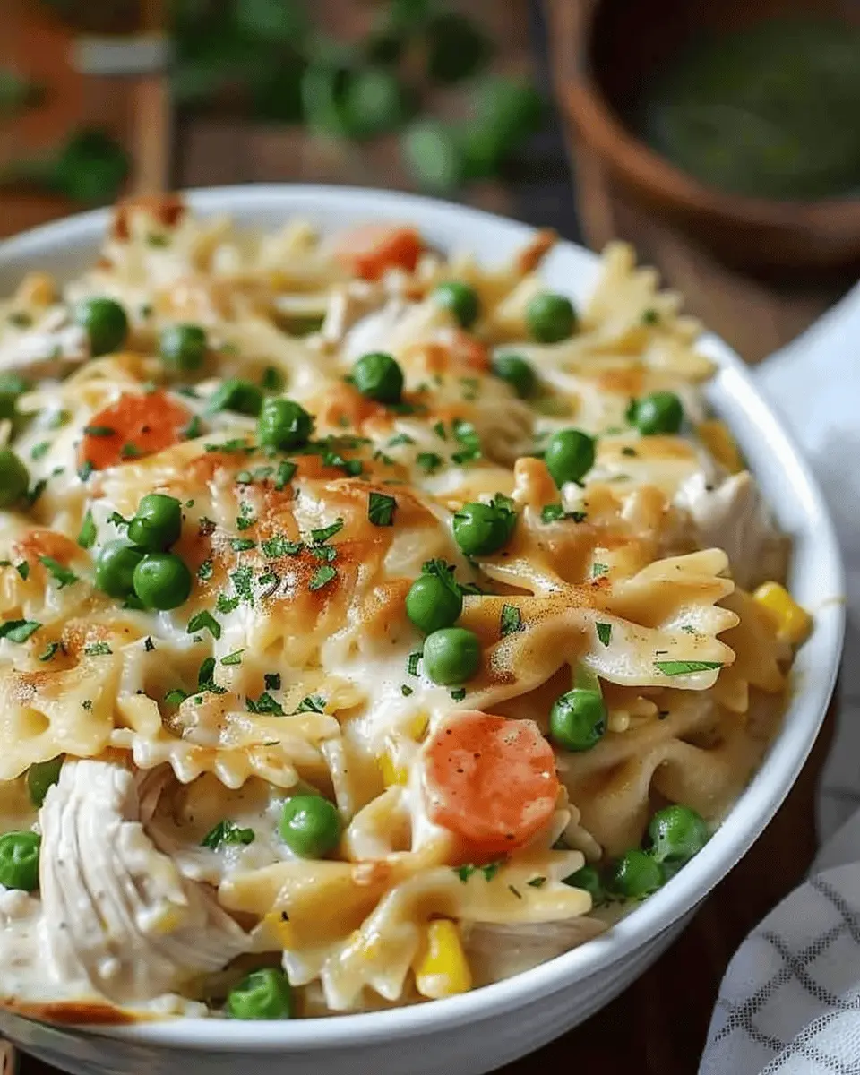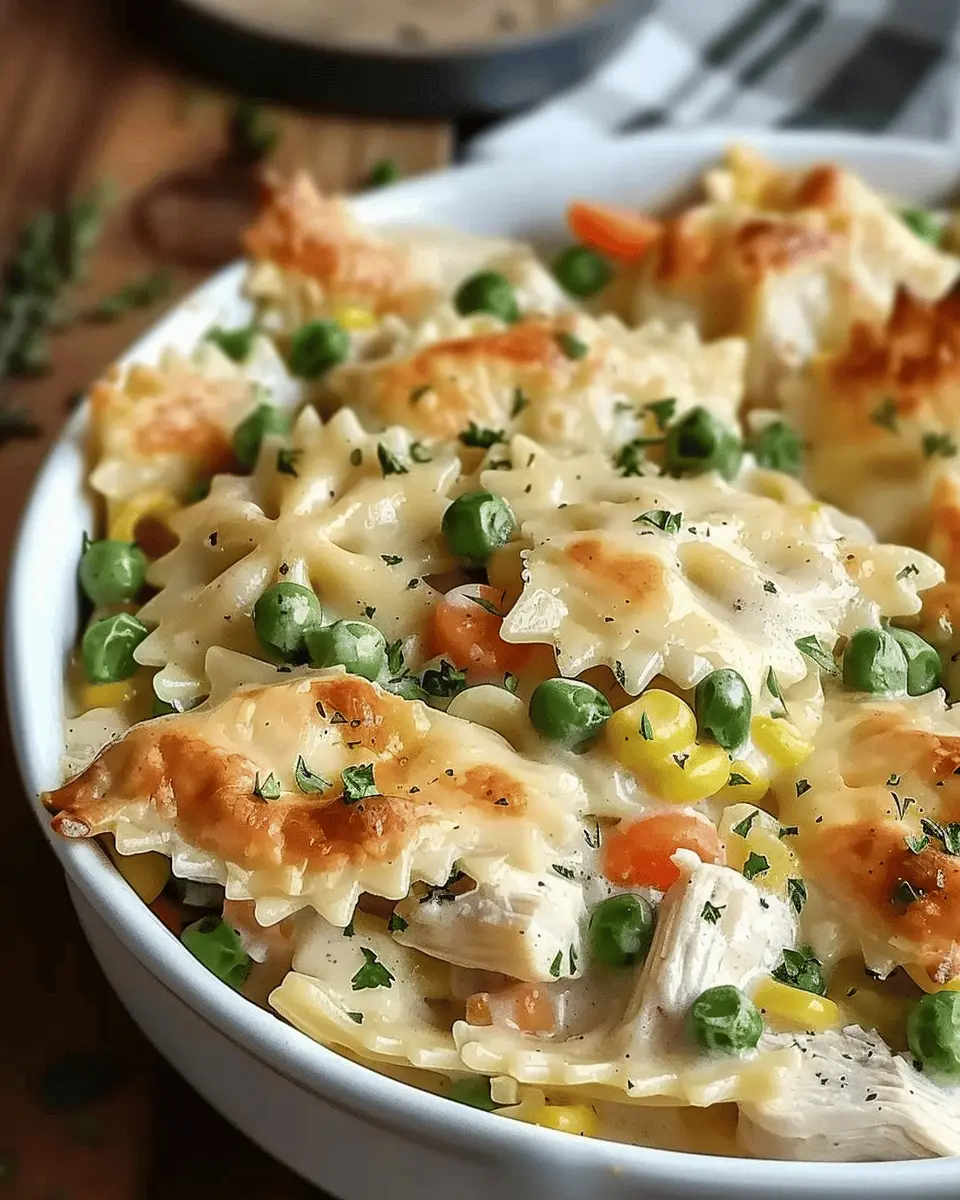 Chicken Pot Pie Pasta: A Cozy, Creamy Delight with Turkey Bacon