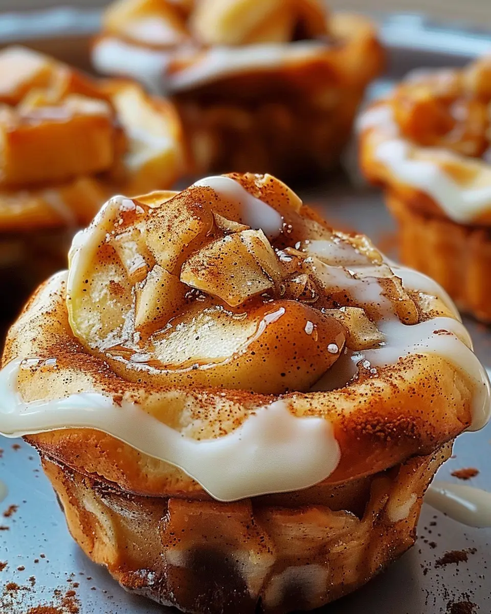 Delight in these mini desserts that combine the flavors of cinnamon rolls and apple pie, perfect for any occasion.