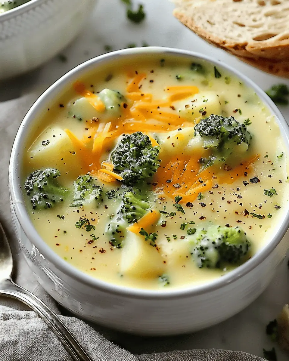 A warm and comforting bowl of creamy broccoli and cheddar potato soup that’s easy to make and perfect for chilly nights.