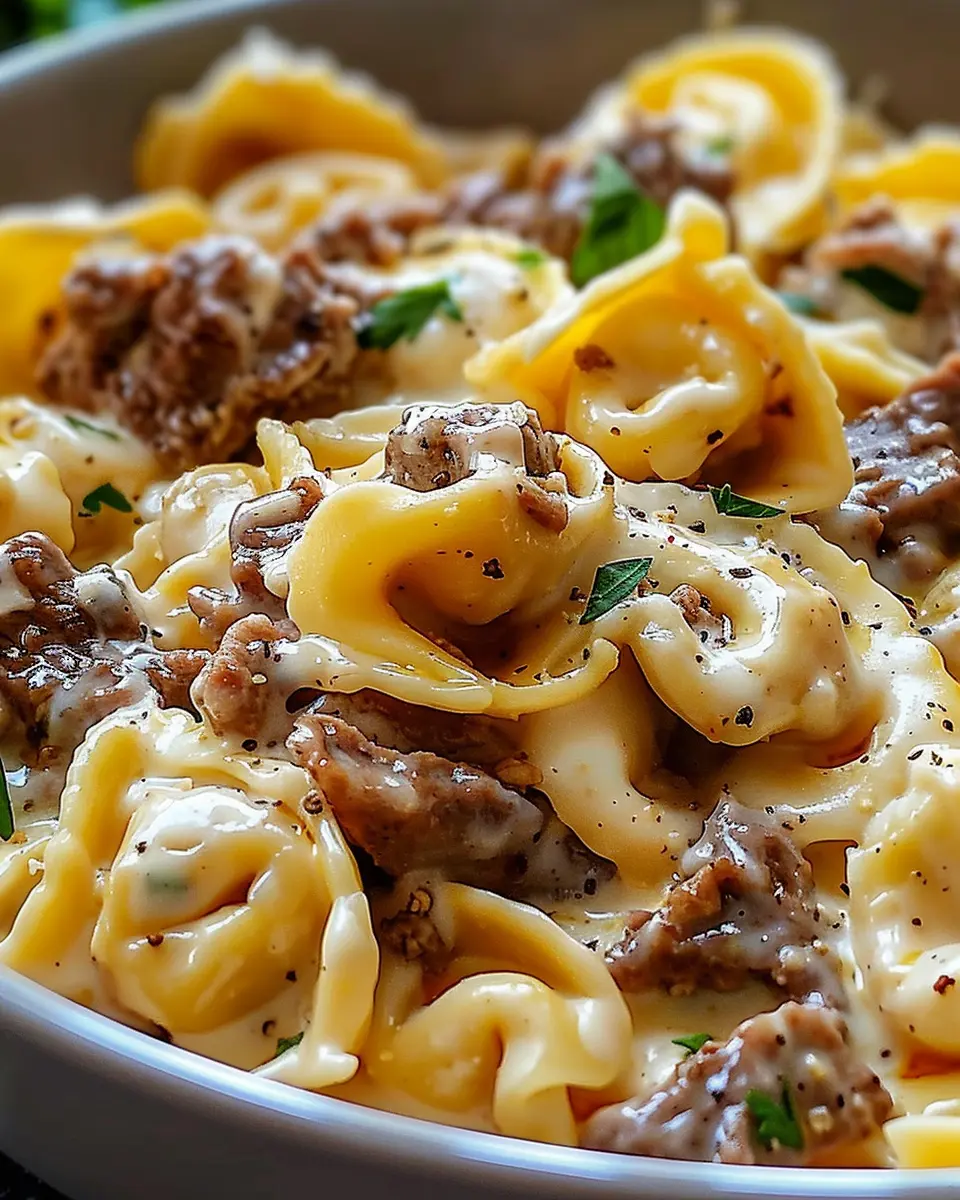 Keywords: Creamy Cheesesteak Tortellini, pasta, comfort food