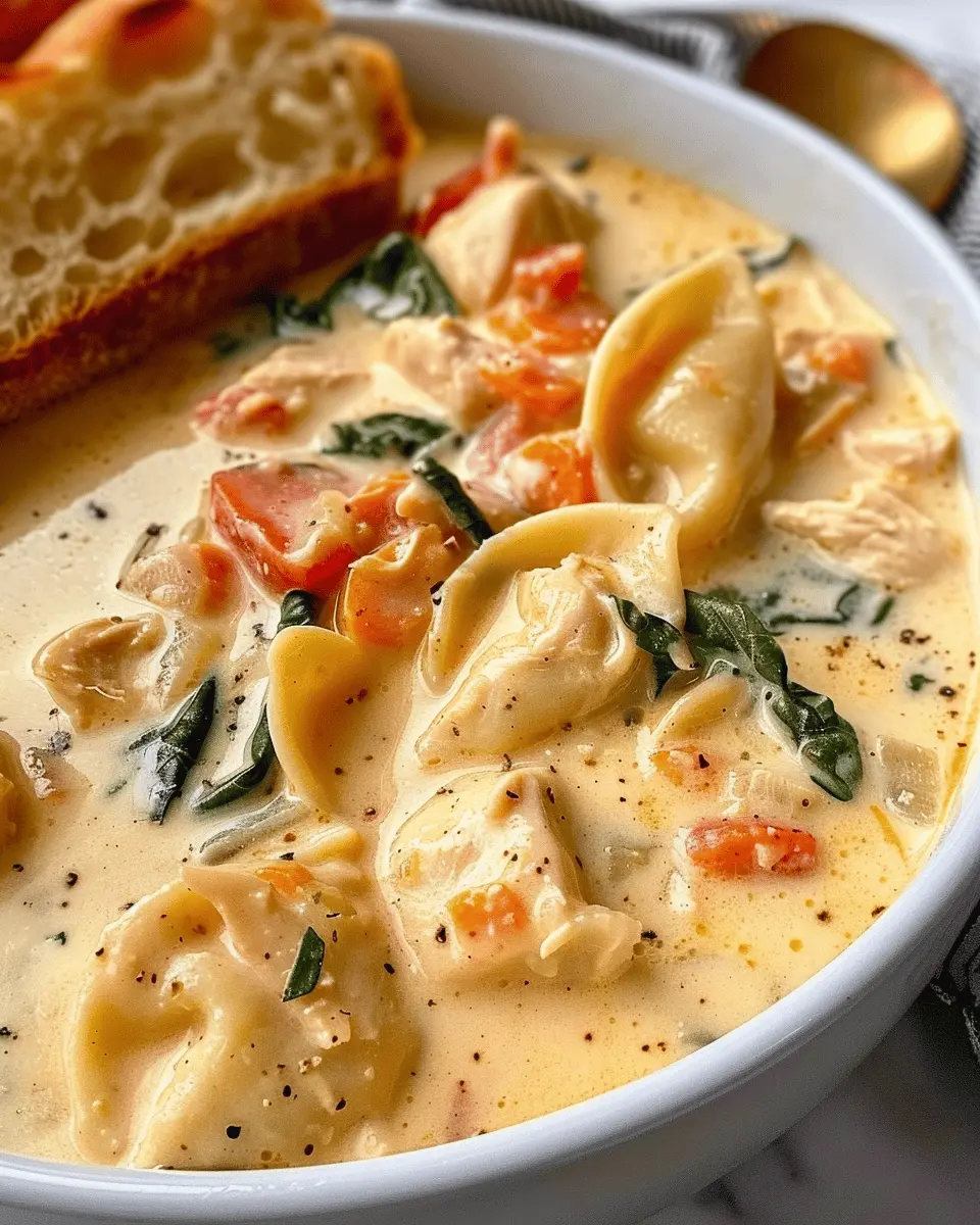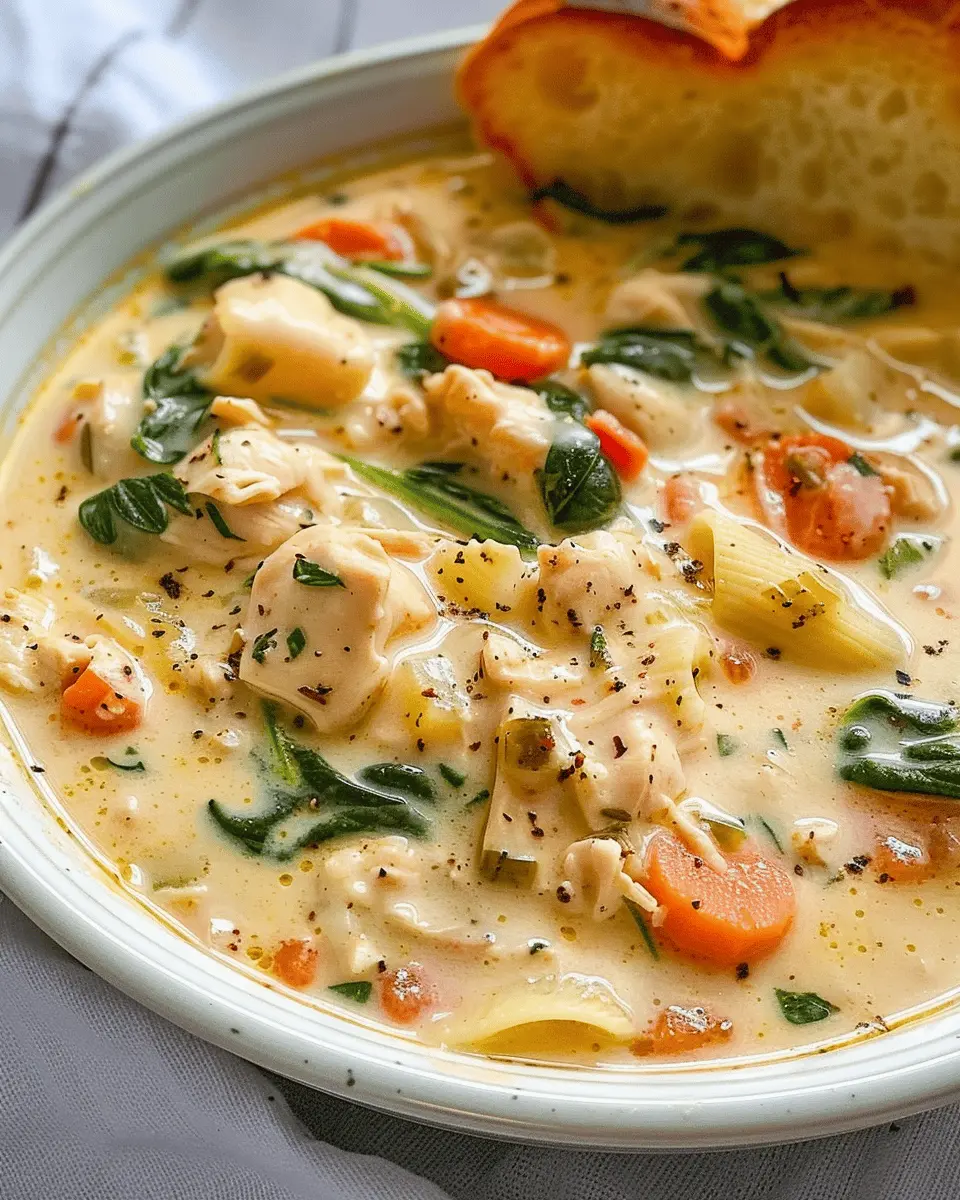 A rich and creamy chicken soup inspired by Tuscan flavors, perfect for a cozy meal.
