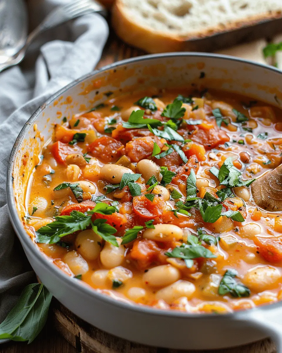 A warm and hearty stew perfect for chilly nights, featuring creamy tomatoes and white beans.
