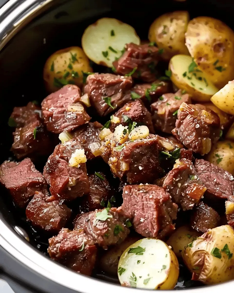 PrintCrockpot Garlic Butter Beef Bites: Easy Comfort with Potatoes