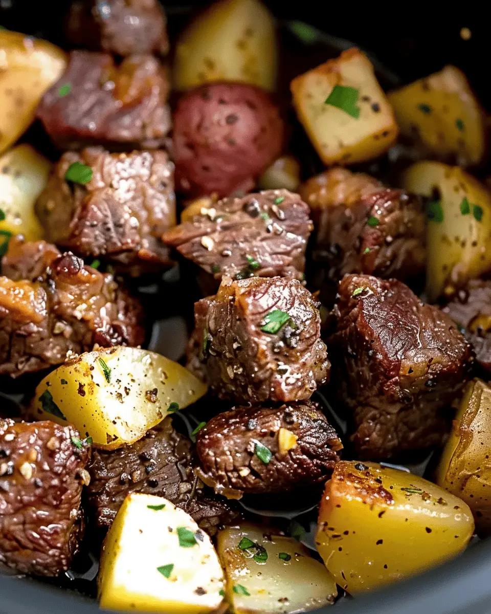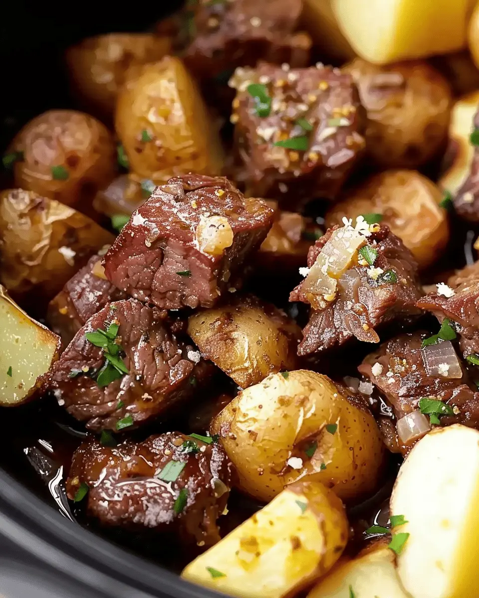 A deliciously easy recipe for Crockpot Garlic Butter Beef Bites with Potatoes that offers comfort food at its finest.
