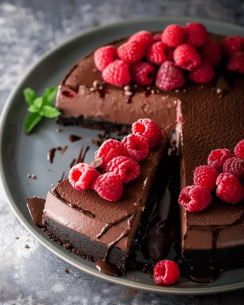 Impress your guests with an artful presentation of your dark chocolate raspberry cheesecake. Start by slicing the cheesecake into generous wedges and arranging them on a decorative platter. Consider garnishing each slice with fresh raspberries and a dusting of powdered sugar for that professional look. A sprig of mint not only adds color but also a refreshing note that balances the richness of the cheesecake. If you’re feeling adventurous, try layering slices on a tiered cake stand for a stunning centerpiece.