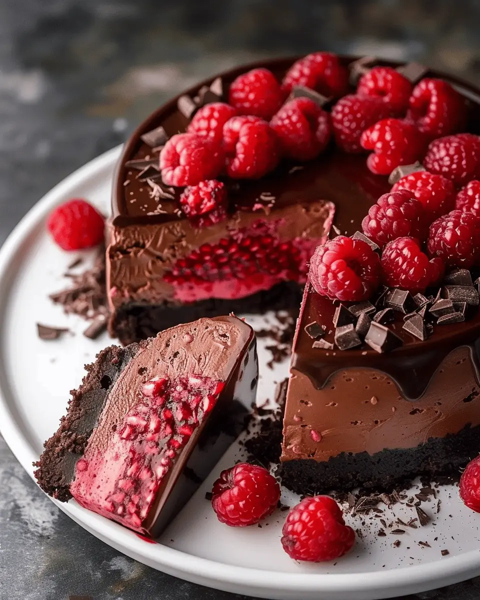 A decadent dessert that combines rich dark chocolate with tangy raspberries, creating a perfect balance of flavors.