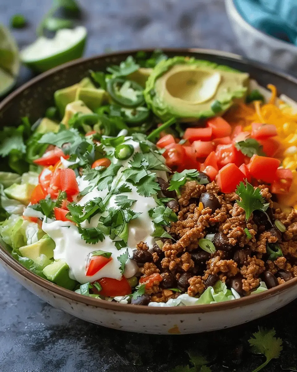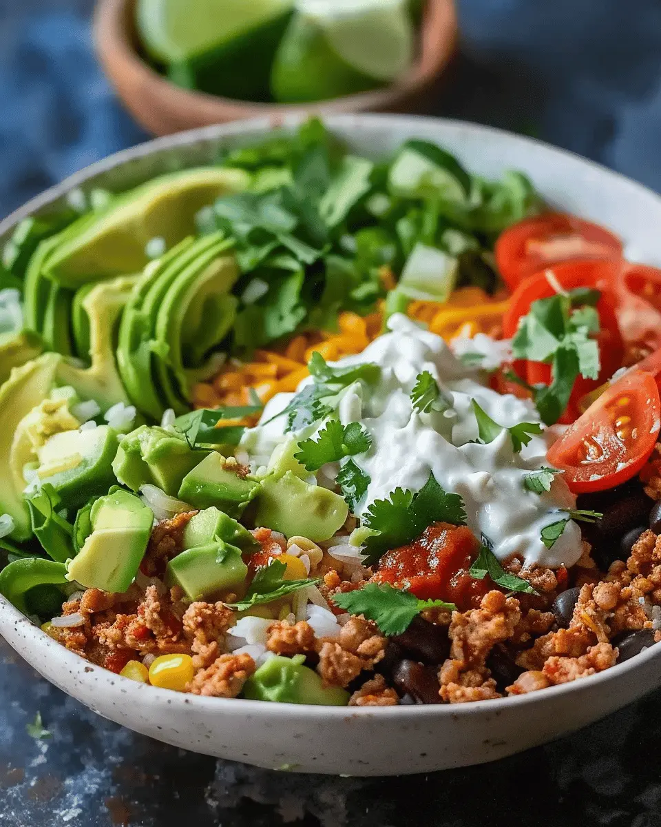 Now comes the fun part—putting all the elements together! Here’s how you can assemble your easy low carb burrito bowl: