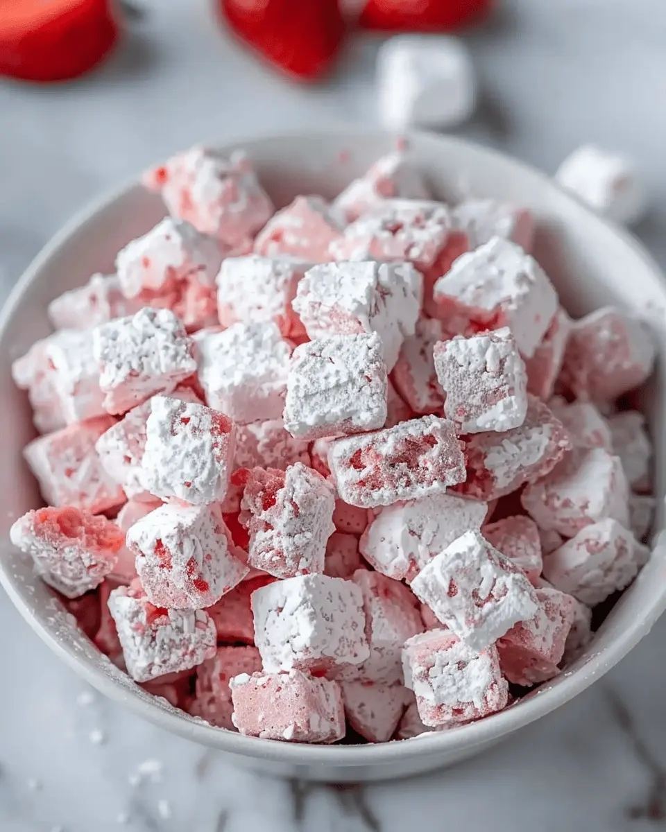 For those of you who love to create in the kitchen, this recipe is a dream come true. Puppy chow has long been a favorite among many, and the addition of strawberries turns it into a delightful dessert. The creamy, sweet coating, combined with the crunch of the cereal, creates a symphony of textures that keeps you coming back for more.