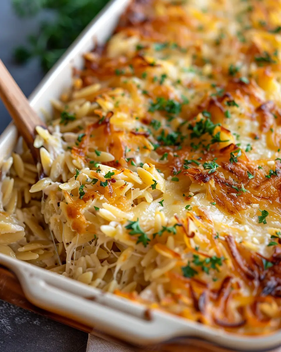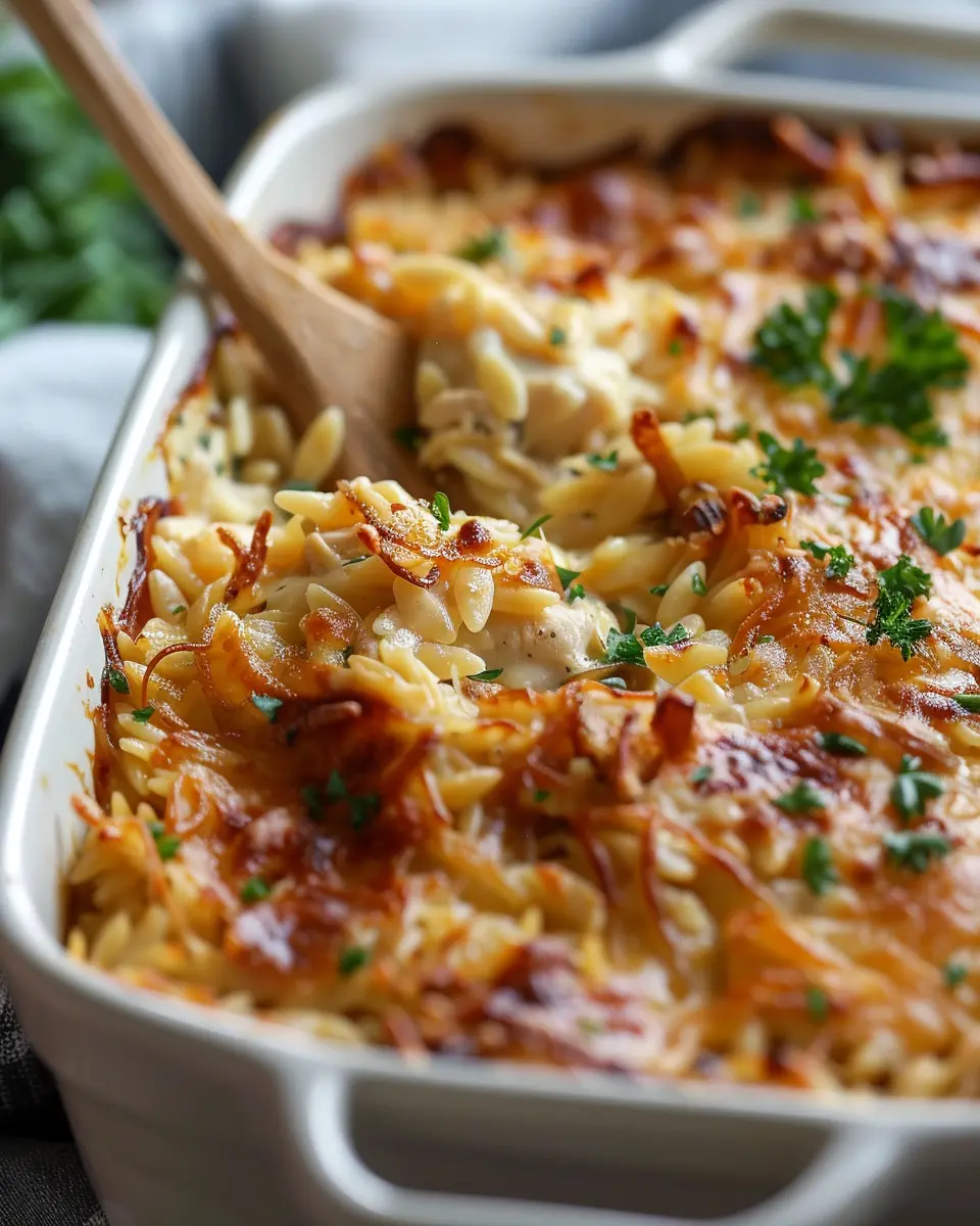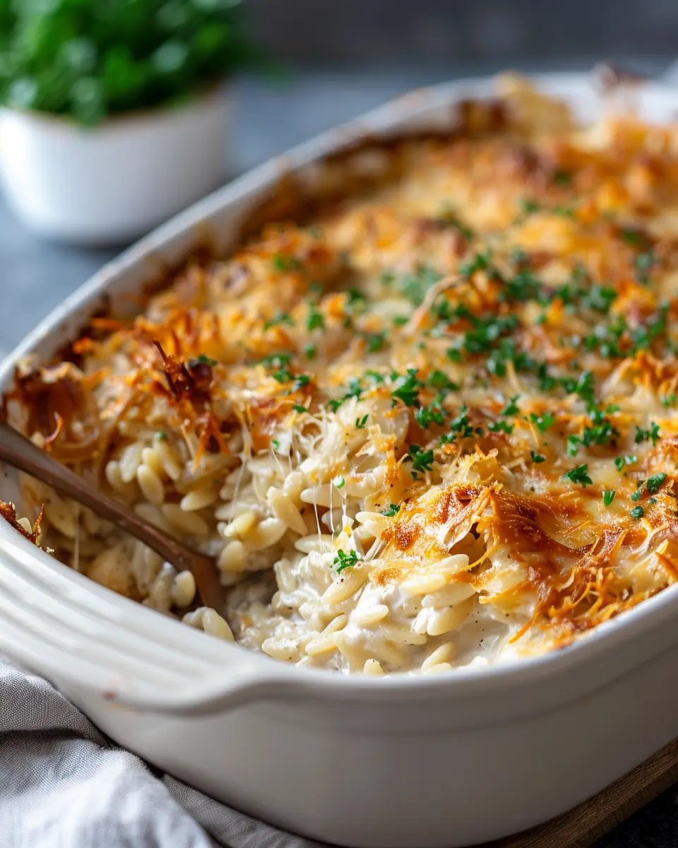 Now, you’re all set to impress at your next gathering with this stunning French Onion Chicken Orzo Casserole. It’s not just a meal; it’s a labor of love that brings everyone together at the table. Enjoy every bite!