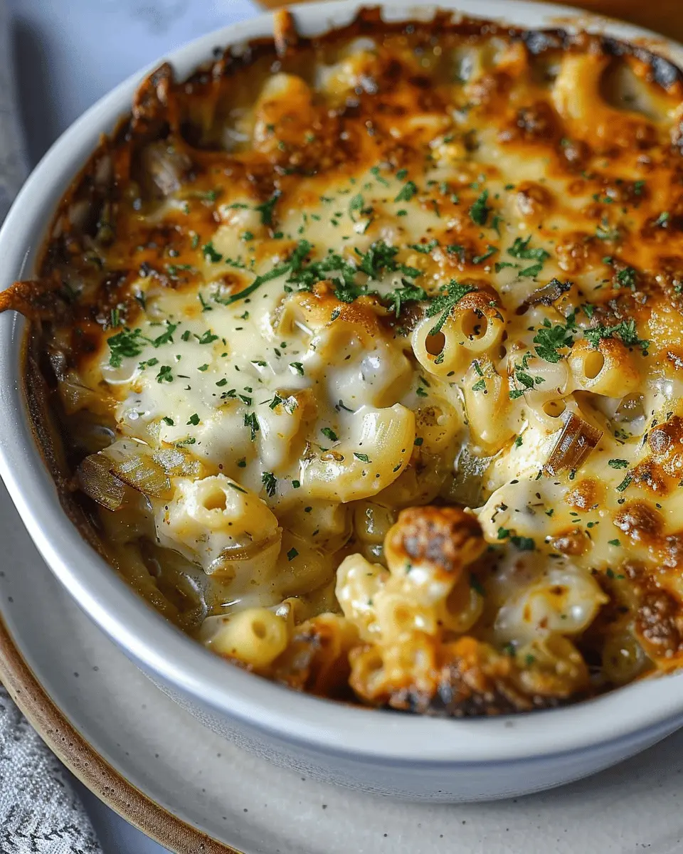 PrintFrench Onion Soup Pasta: Indulgent Comfort Food with Turkey Bacon