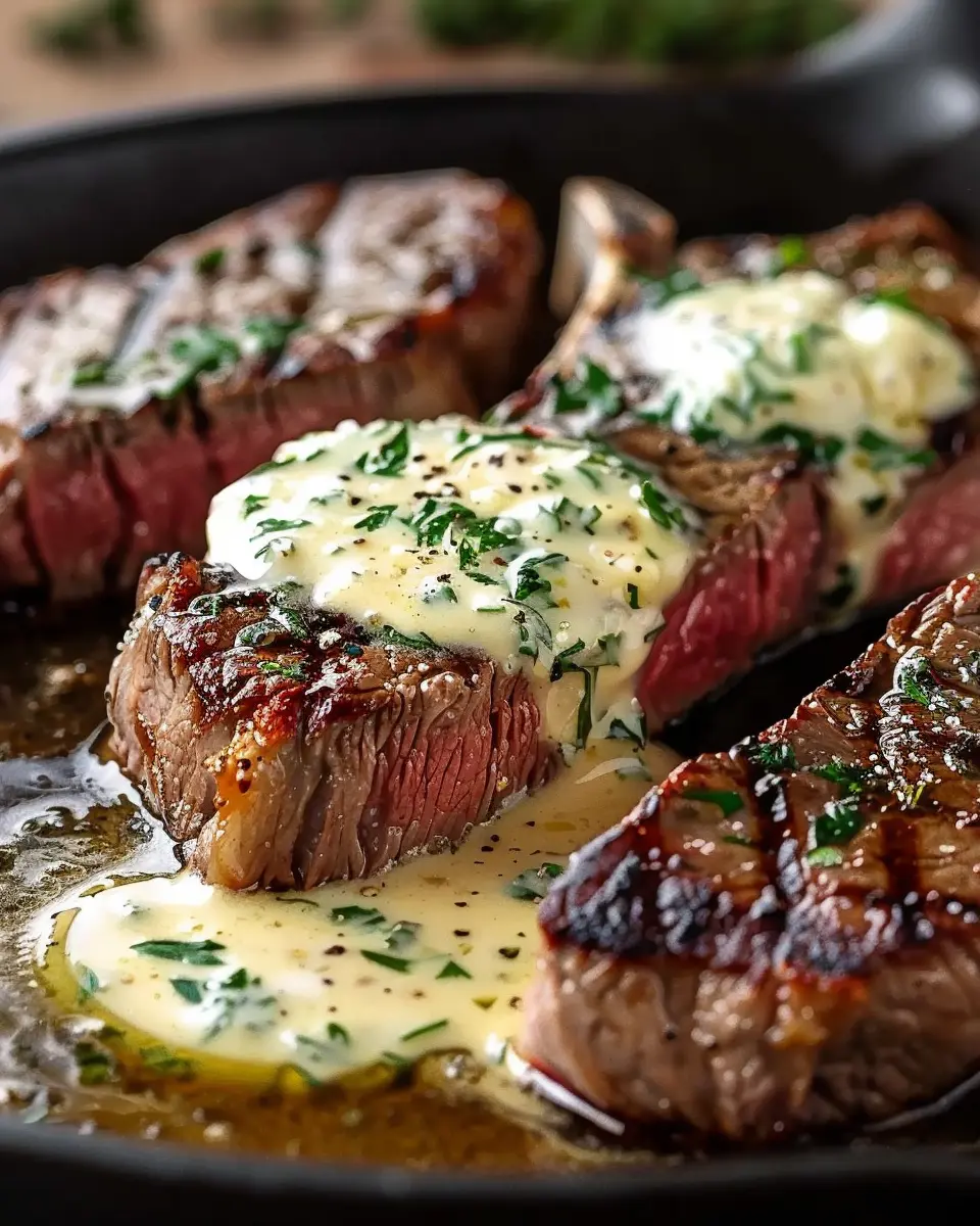 Keywords: Garlic Butter Steak, Parmesan Cream Sauce, Juicy Steak