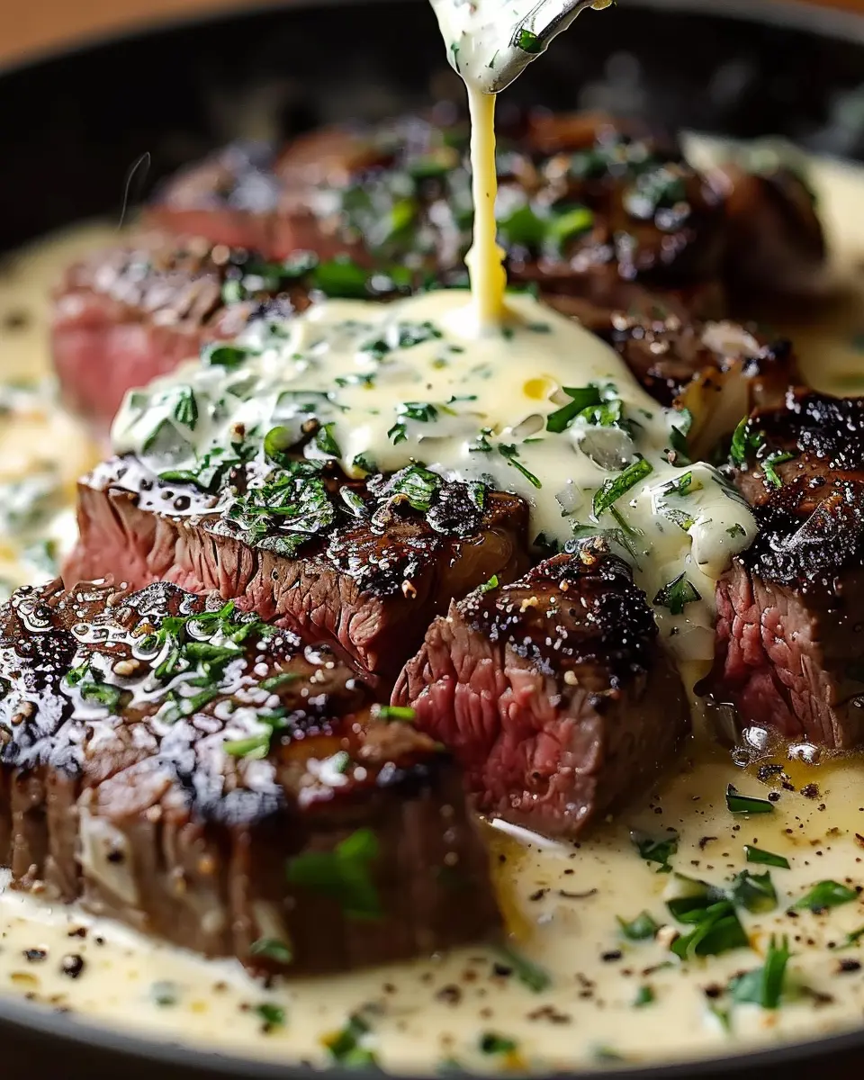Now comes the fun part—plating! Slice the steak against the grain for maximum tenderness and lay the pieces elegantly on a serving plate. Drizzle or spoon the luscious Parmesan cream sauce over the steak, letting it cascade down the sides.