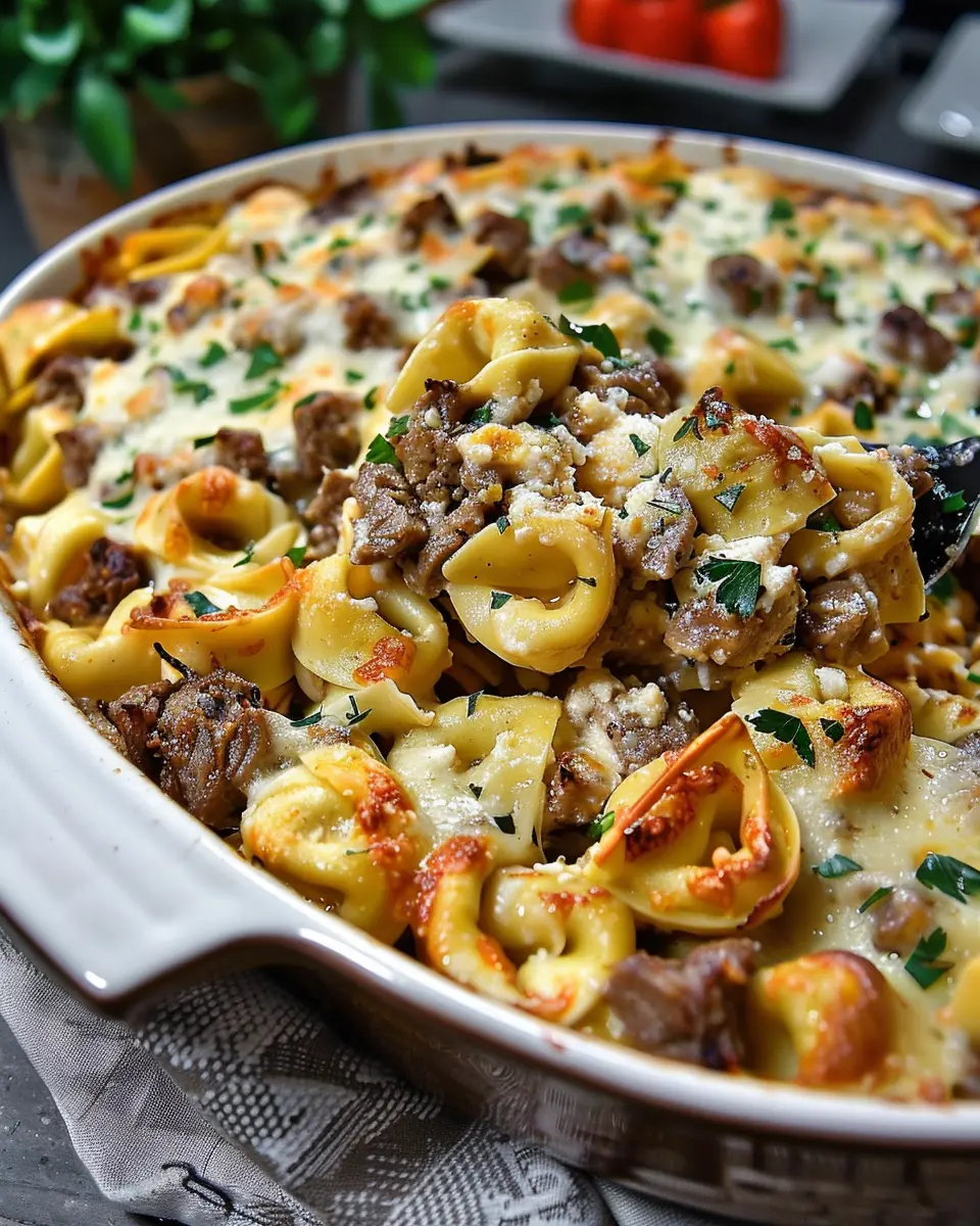 Golden Cheese Steak Tortellini Casserole: A Delicious Twist