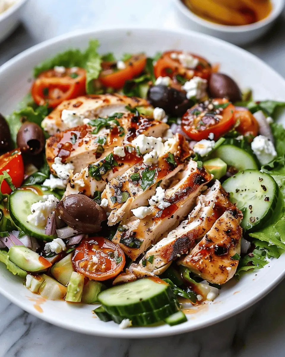 Moreover, Greek salad with chicken is versatile. Customize it to match your taste preferences or whatever you have on hand. If you’re a fan of Mediterranean flavors, consider tossing in some Kalamata olives and feta cheese. Adjust the dressing to accommodate your palate—maybe a splash of lemon juice to brighten it up!