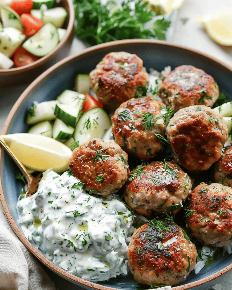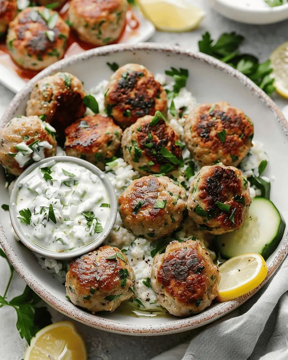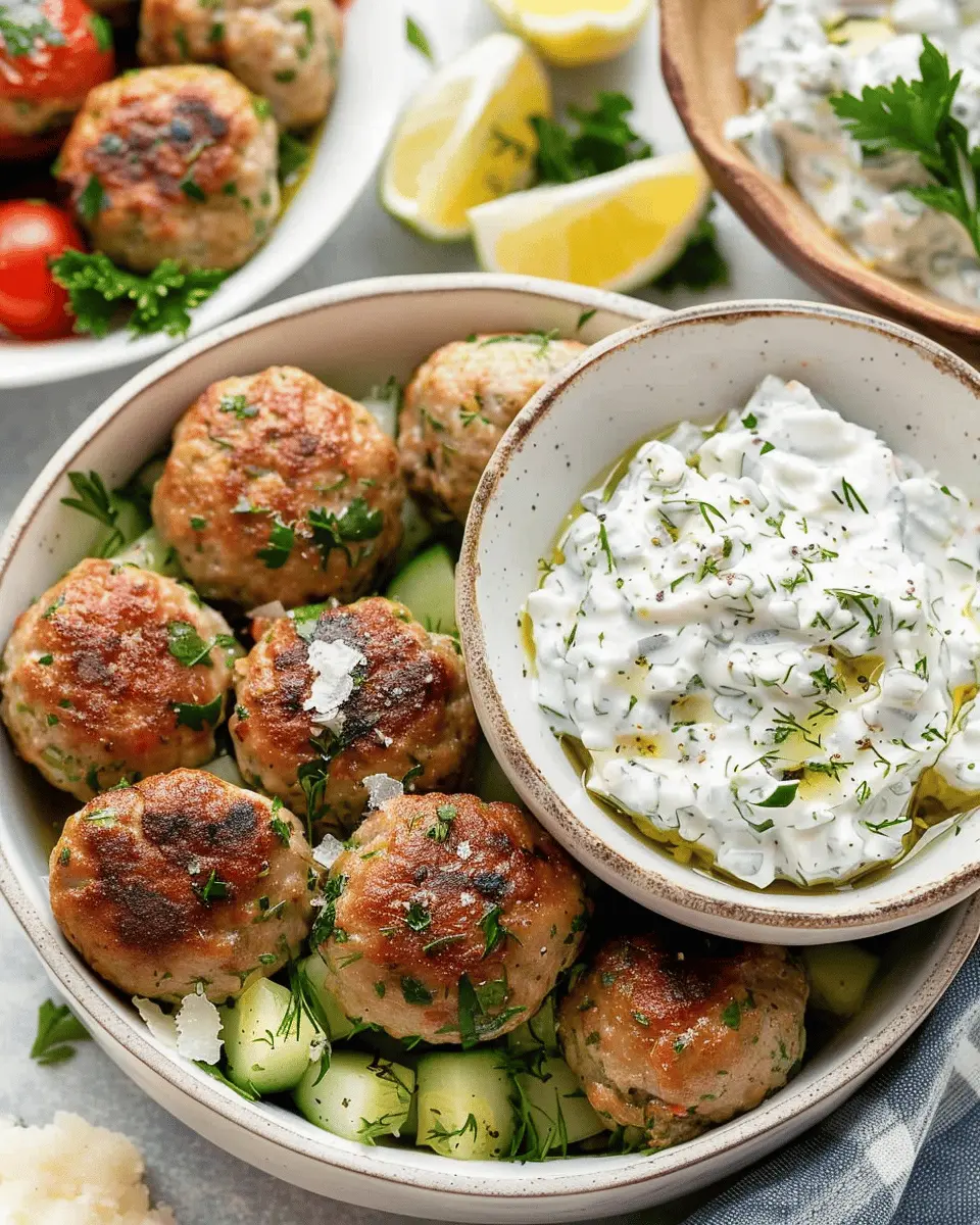 PrintGreek Turkey Meatballs: Juicy Delights with Homemade Tzatziki