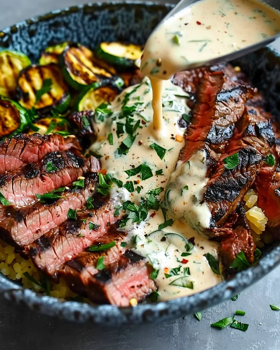 Grilled Steak Bowl: Easy Recipe with Creamy Sauce & Grilled Zucchini