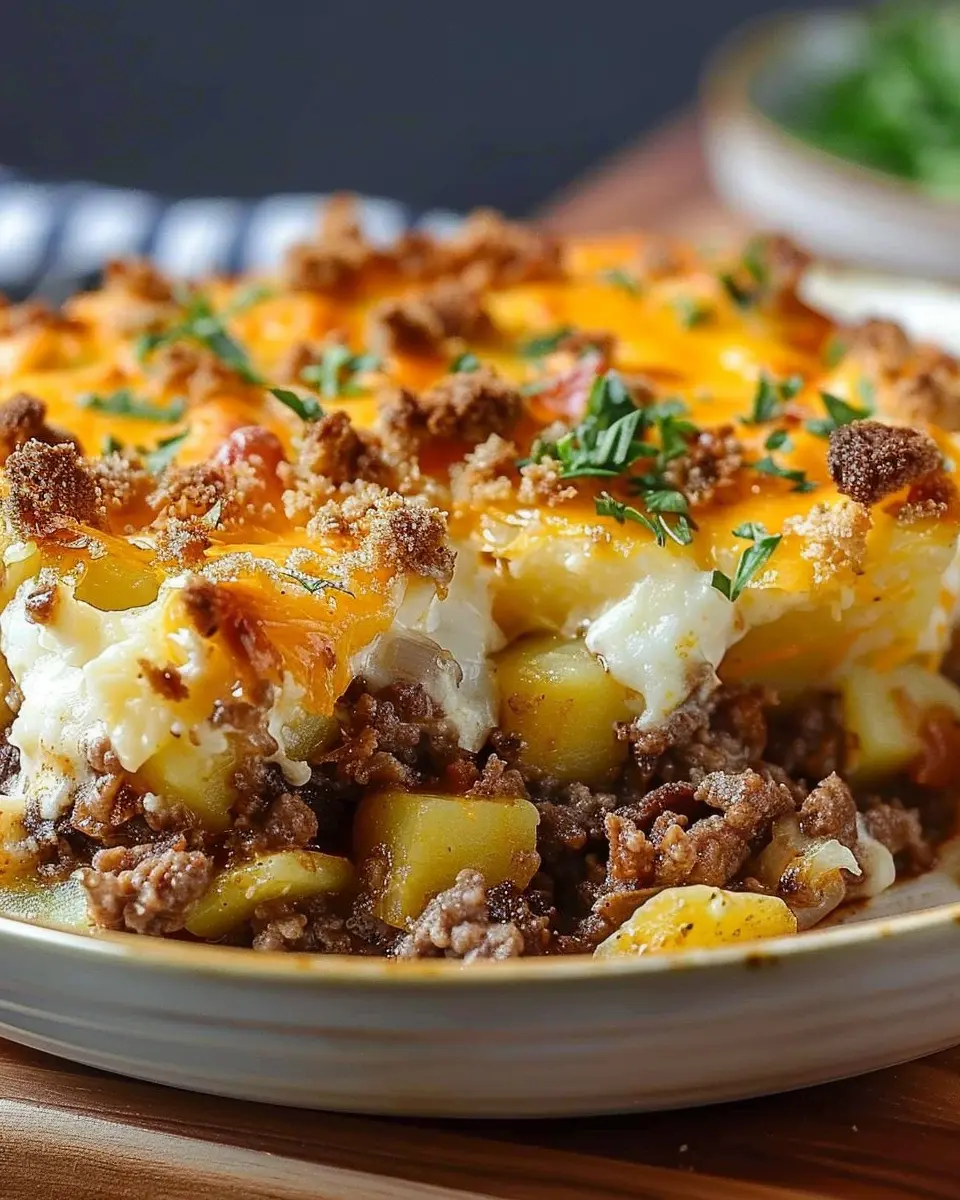 A cozy and hearty casserole that combines ground beef and potatoes for a satisfying meal.
