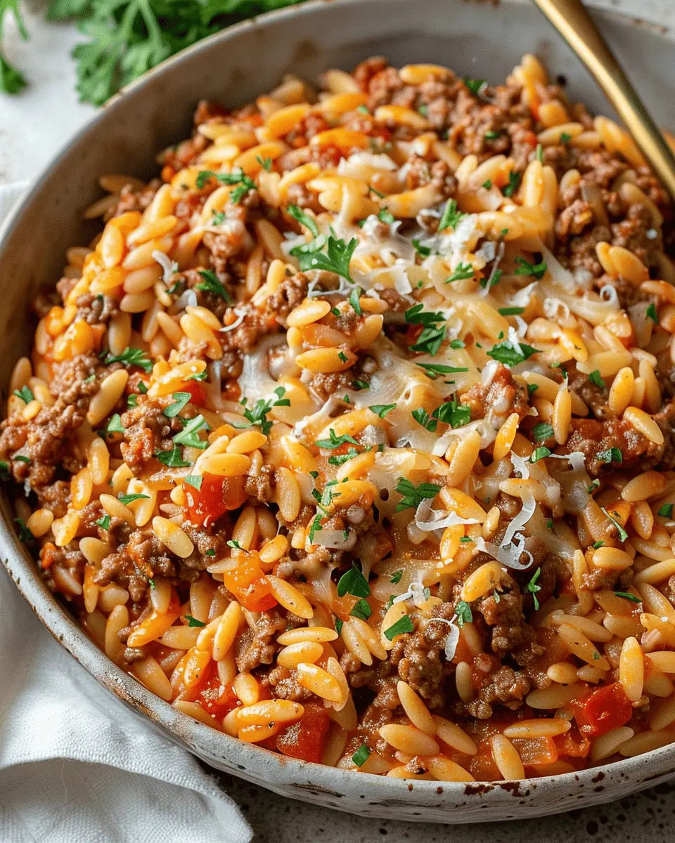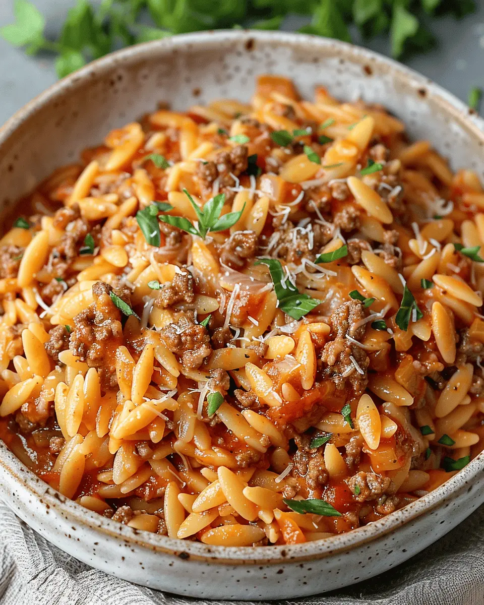 Keywords: Ground Beef Orzo, Comfort Food, Easy Recipe, Creamy Tomato Sauce
