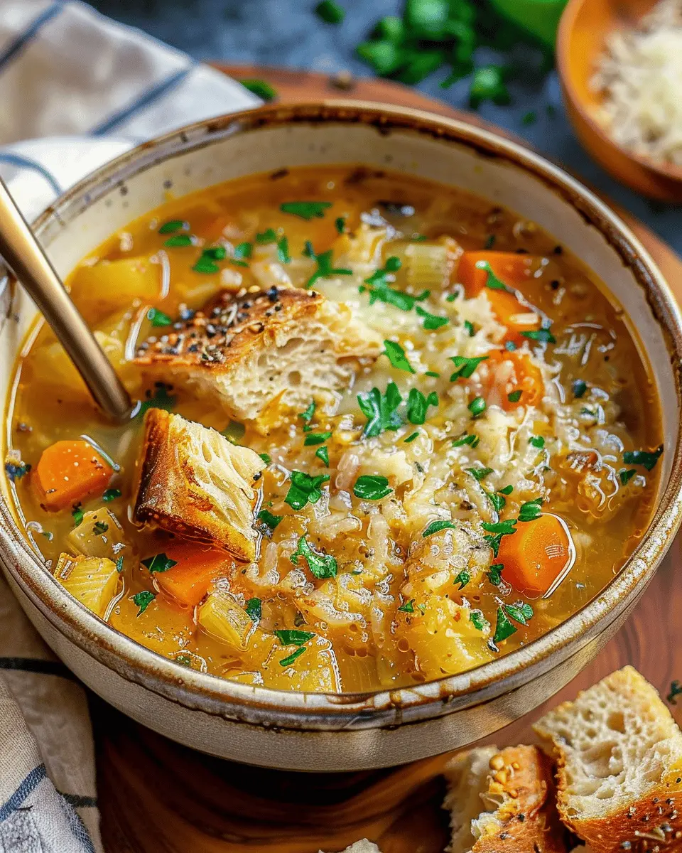 If you’re looking to enjoy a vegetarian version of Italian Penicillin Soup, you’ll be pleased to know that it can be just as hearty and satisfying. Swap out the turkey bacon and chicken ham for a mix of roasted vegetables, like bell peppers, zucchini, and carrots. You can also add protein-rich ingredients such as lentils or chickpeas to ensure you’re getting those essential nutrients. For depth of flavor, consider incorporating vegetable broth and a splash of lemon juice for brightness.