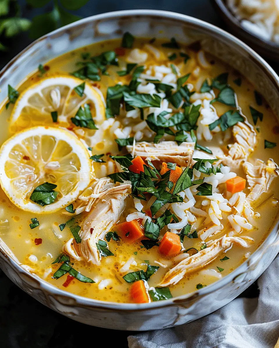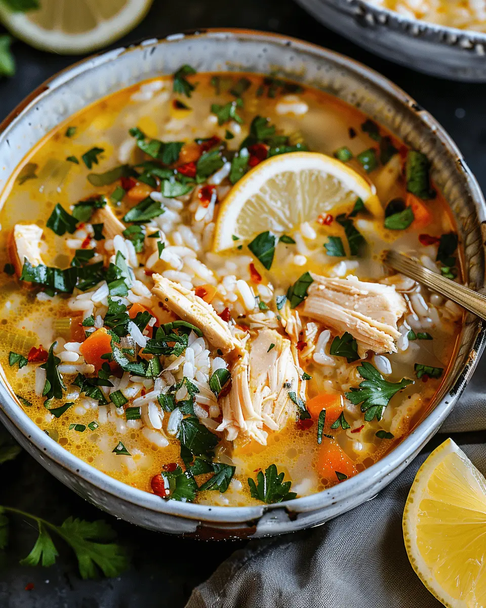 A delightful and nutritious soup that combines the bright flavors of lemon, ginger, and turmeric with tender chicken and rice.