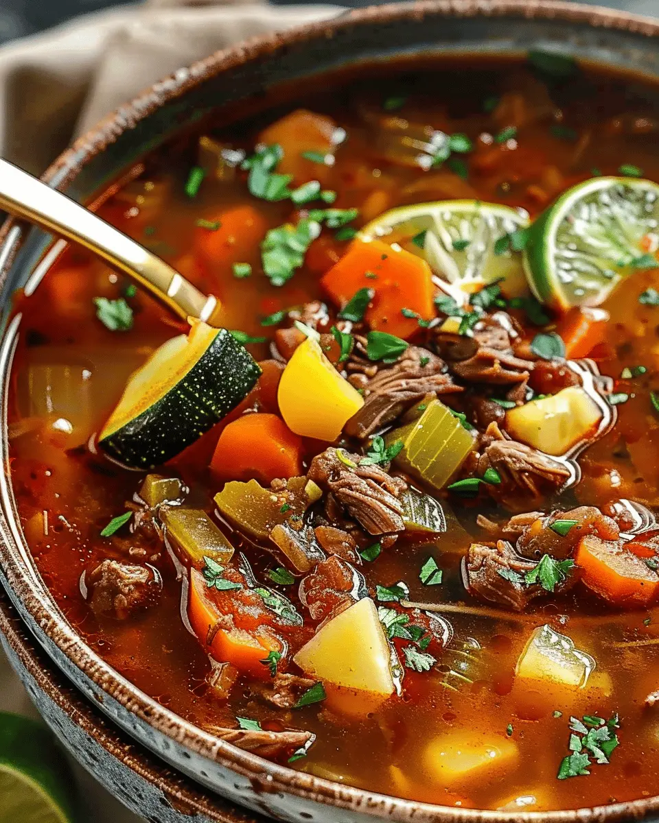 A delicious and hearty Mexican beef and vegetable soup that’s perfect for any occasion.