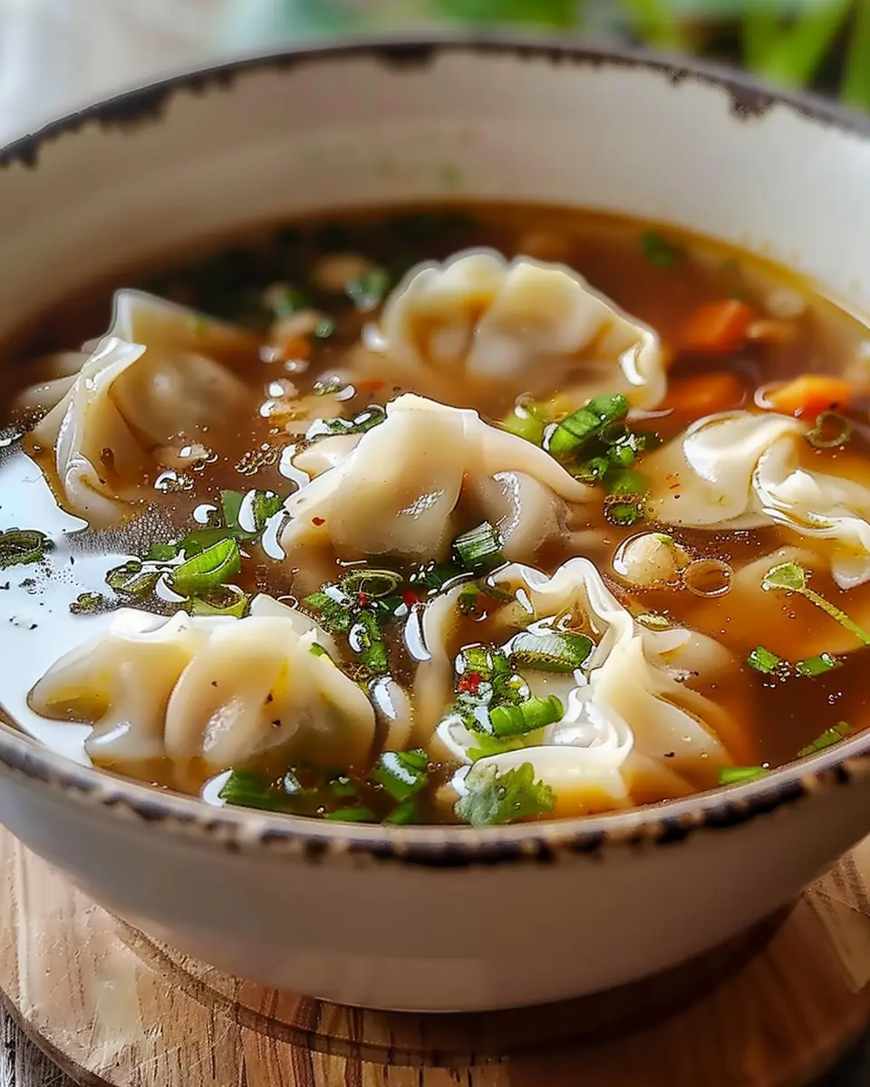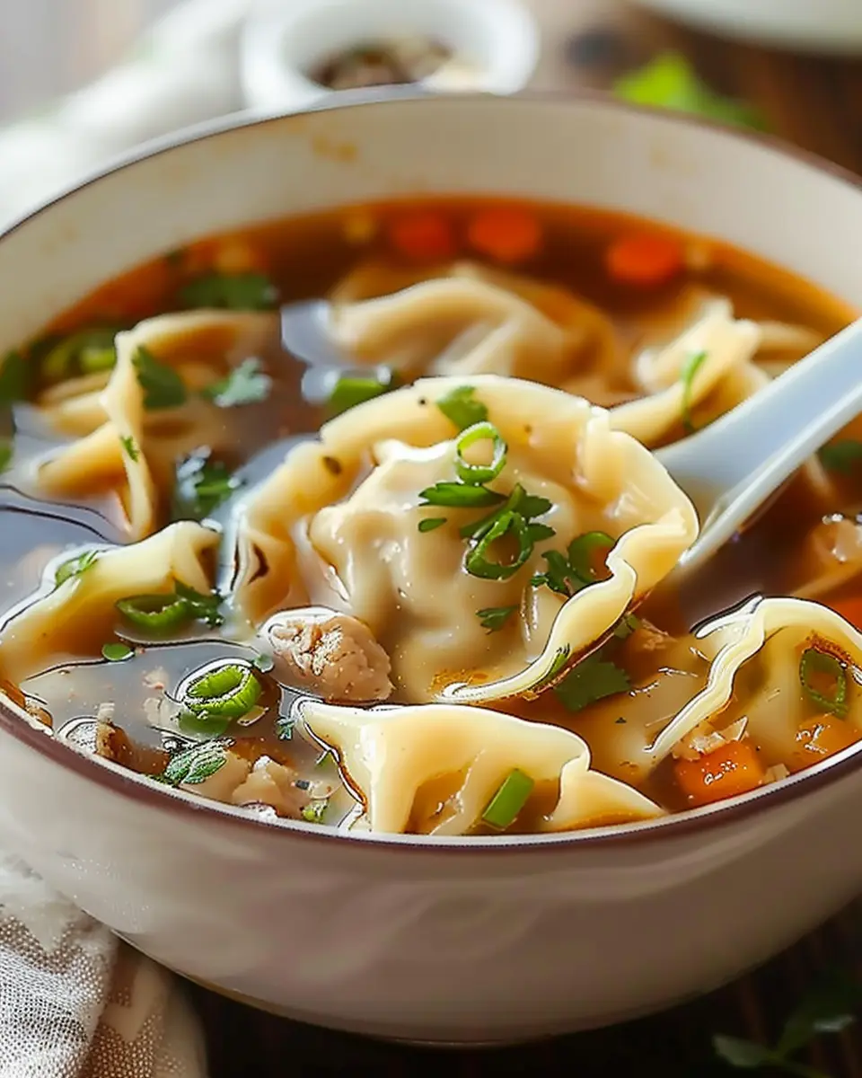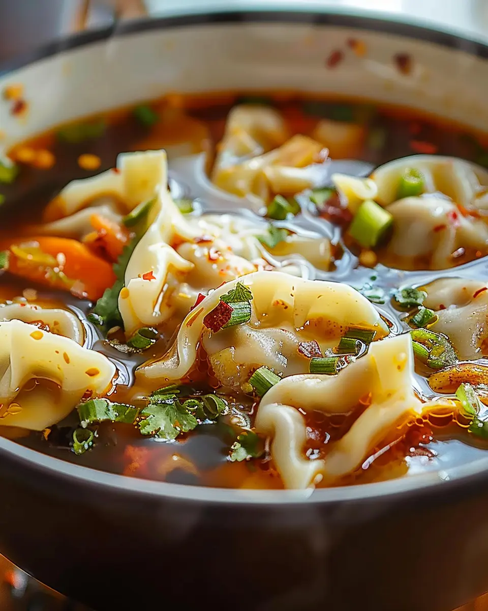 A warm and hearty potsticker soup that brings comfort to your home cooking.