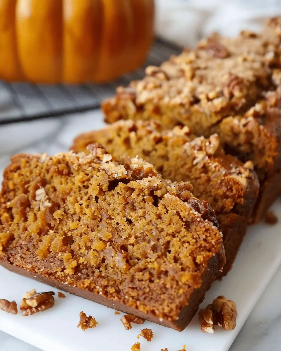 PrintPumpkin Bread Delight with Brown Sugar Pecan Topping Recipe