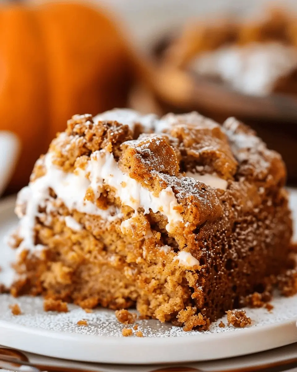 This Pumpkin Coffee Cake is the perfect indulgent treat for fall mornings, combining the warm flavors of pumpkin and spices.