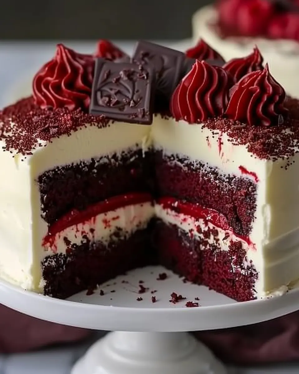 This Red Velvet Cheesecake Layer Cake is the perfect indulgent dessert for special occasions, featuring a rich cheesecake layer sandwiched between moist red velvet cake layers.