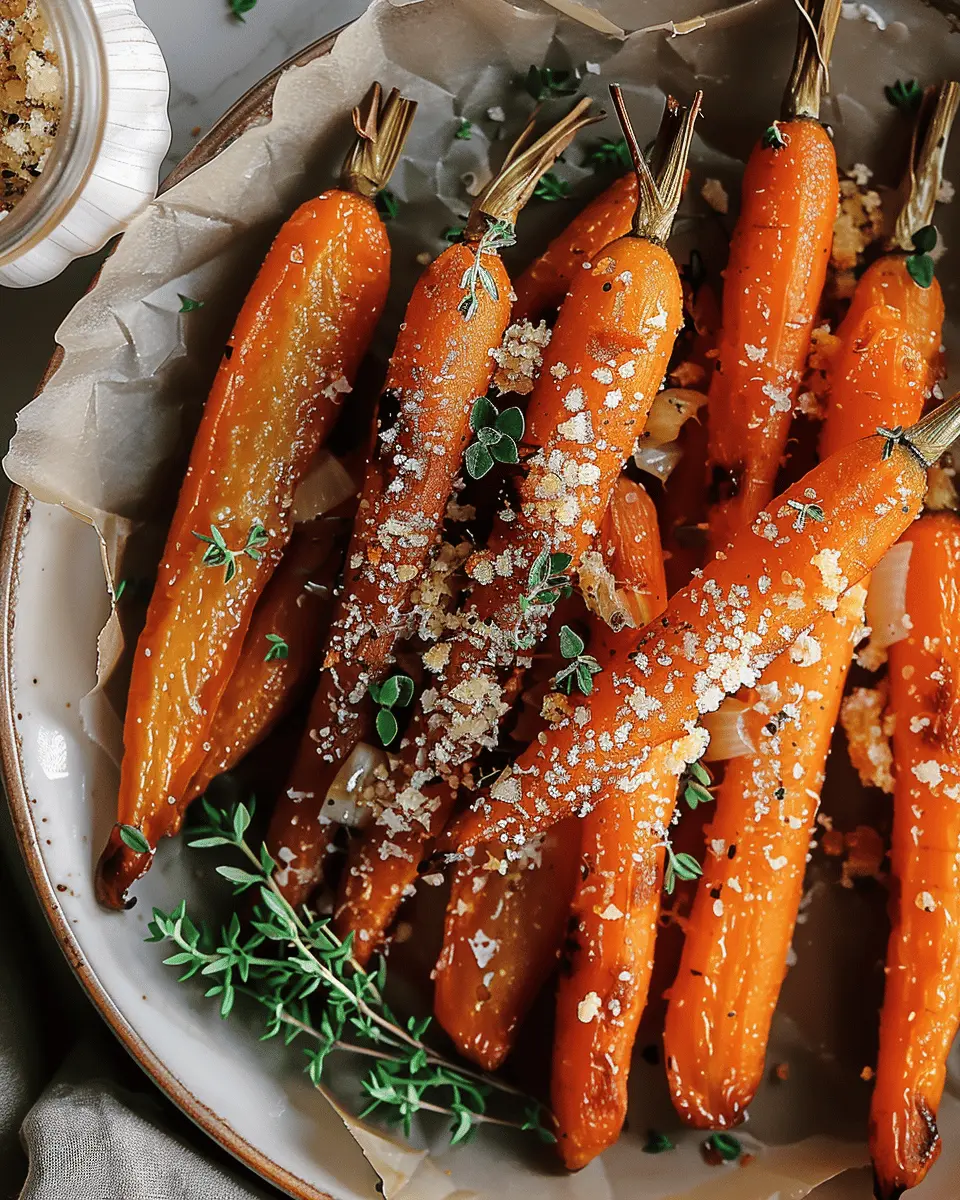 When the carrots are almost done, sprinkle the grated Parmesan cheese over the top and return them to the oven for an additional 5 minutes. The cheese will melt and create a crispy, delicious topping that complements the sweet, tender carrots beautifully.