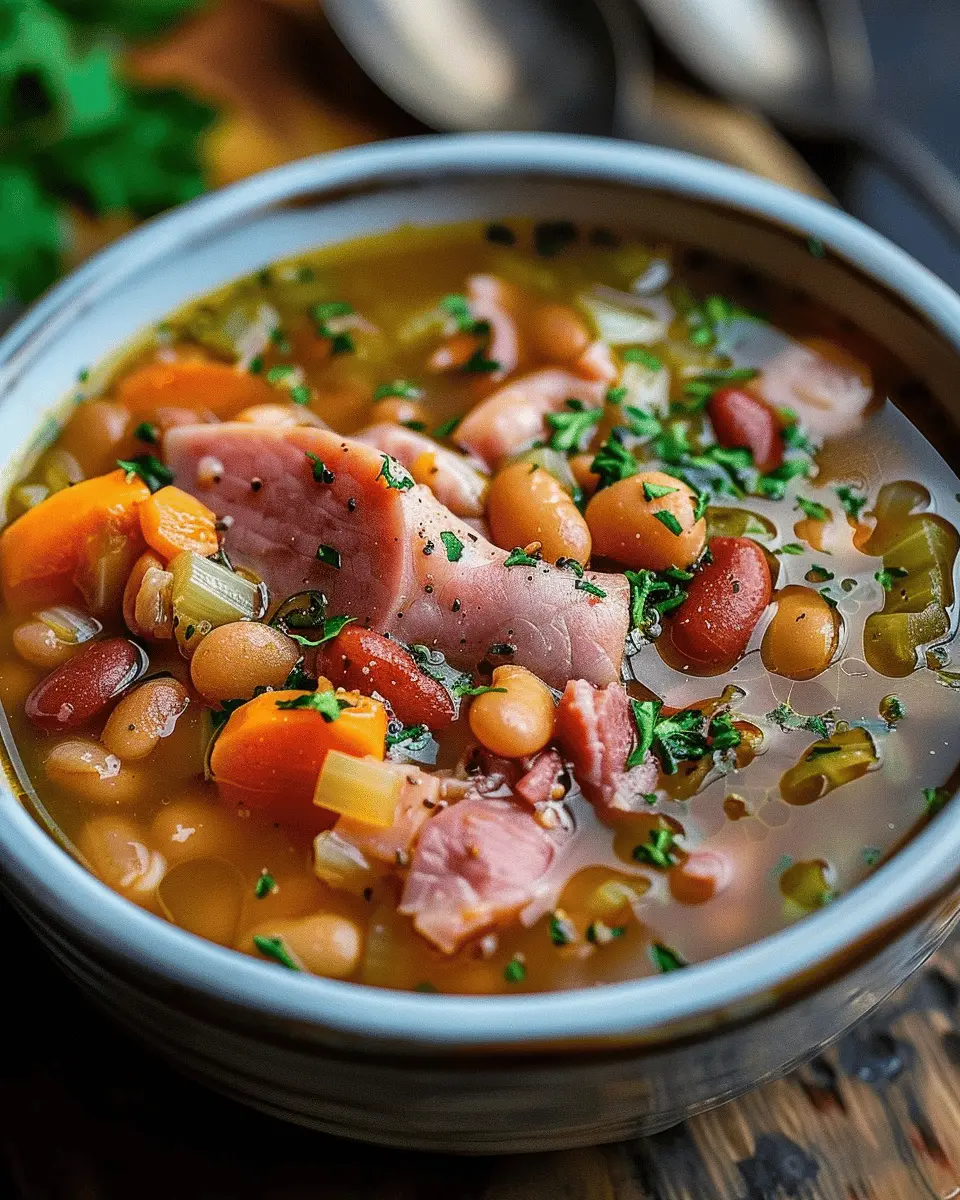 So, what exactly makes this soup such a beloved comfort food? It all begins with the stars of the show: the smoked chicken ham hock and beans. The ham hock is slow-cooked to perfection, infusing every bite with its rich, smoky essence that only gets better the longer it simmers. Paired with beans that provide both protein and fiber, this soup is not only delicious but also nutritious. And let’s not forget about the tender cabbage, which adds a delightful crunch and complements the savory broth beautifully.