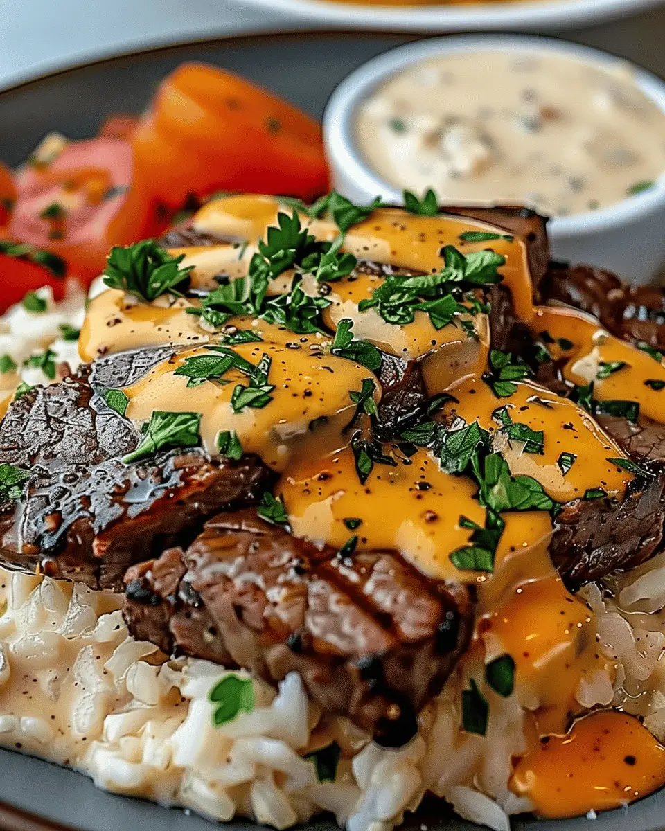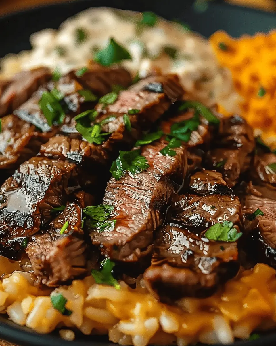 If you’re looking to turn up the heat, Spicy Steak and Queso Rice is your go-to variation. Start with your favorite steak and marinate it in a mixture of chili powder, cumin, and a splash of your favorite hot sauce. When it’s time to cook, sear the steak until it’s perfectly tender, then slice it thinly.