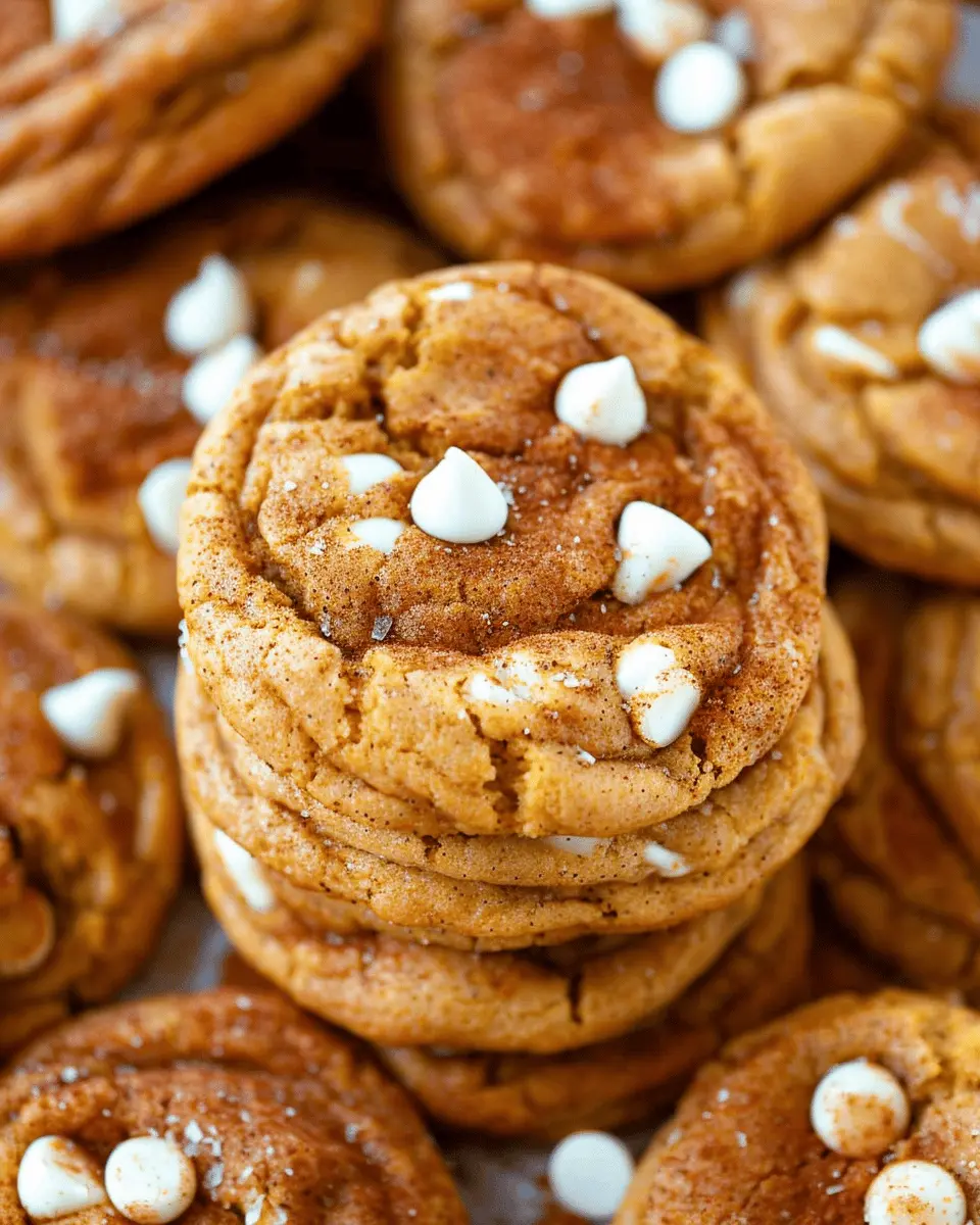 Indulge in the delightful flavors of White Chocolate Pumpkin Snickerdoodles this fall. These cookies combine rich pumpkin, creamy white chocolate, and a cinnamon-sugar coating for a perfect autumn treat.